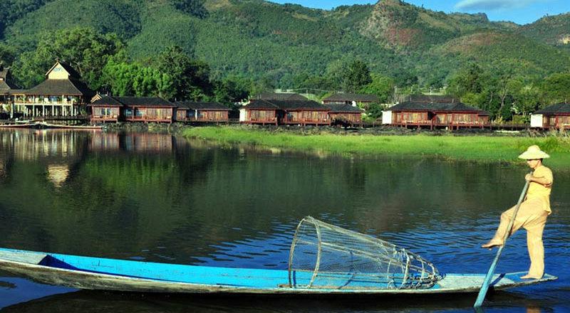 Complexe luxueux posé sur les eaux paisibles du lac Inle.