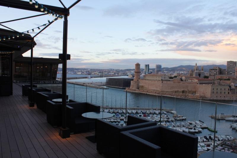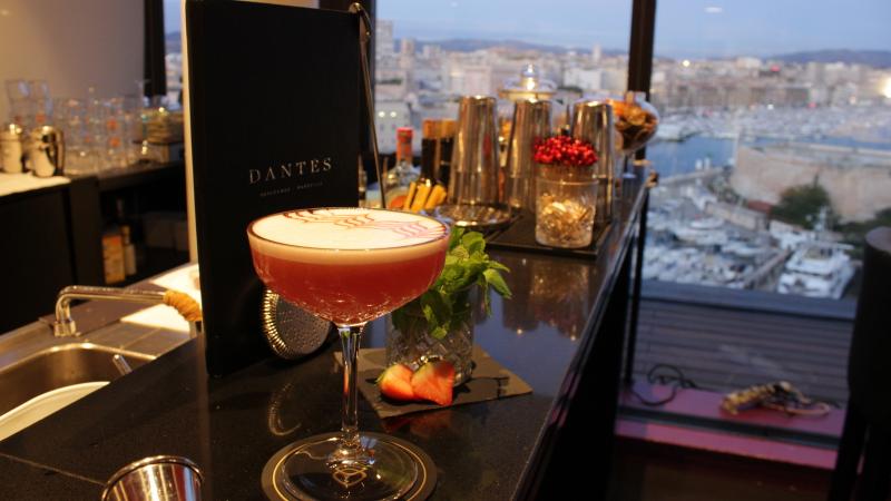 La Dantès Skylounge, le bar à cocktails de l'hôtel Sofitel du Vieux-Port offre une vue imprenable sur les 5 monuments historiques les plus emblématiques de Marseille.