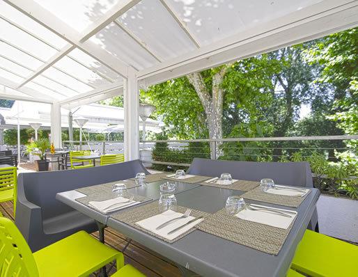 La terrasse en teck, tel un ponton, surplombe la Garonne. C’est dans ce lieu exceptionnel, chargé d’histoire, éclairé à la bougie que vous dégusterez un plat ou boirez un dernier verre.En amoureux ou en groupe, assis près de la cheminée ou en terrasse avec vue sur la Garonne, vous dégusterez les plats raffinés du chef. Des produits frais de saison, rigoureusement sélectionnés pour une cuisine aux accents du Sud.