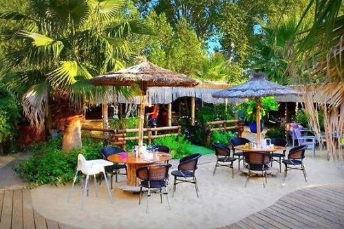 Pas besoin de prendre l’avion pour retrouver l’ambiance des Antilles, de Tahiti, de l’Afrique…“Des coins cosy dans des gazebos, les pieds dans le sable au milieu des bananiers et palmiers…”