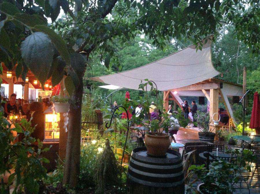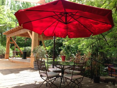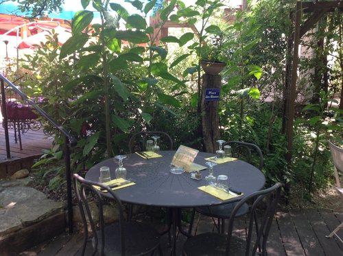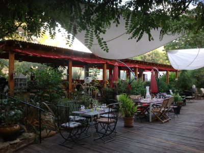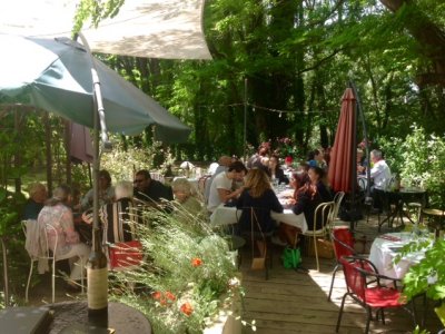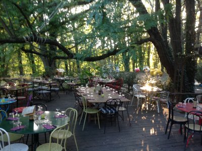 La Famourette est naturellement étagée sur trois niveaux descendants sur l’Hérault avec, une prairie herbeuse ombragée par de grands arbres centenaires.On peut y dîner en amoureux à la terrasse, partager des tapas, écouter un concert et boire un verre.