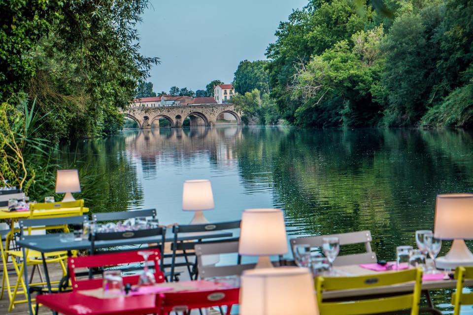 Un lieu d'exception au bord de l'Orb où vous pouvez déguster des tapas ou des plats traditionnels les pieds dans l'eau