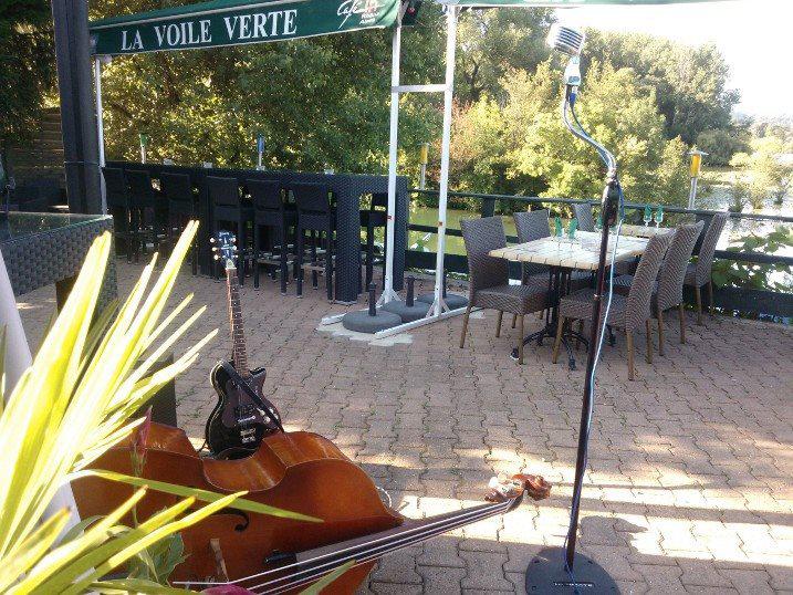 Environnement boisé et calme, terrasse ombragée, rayons de soleil et vos repas prendront déjà un petit air de vacances ! La Voile Verte est un établissement unique en son genre : au bout d'un chemin discret du port de plaisance d'Albigny