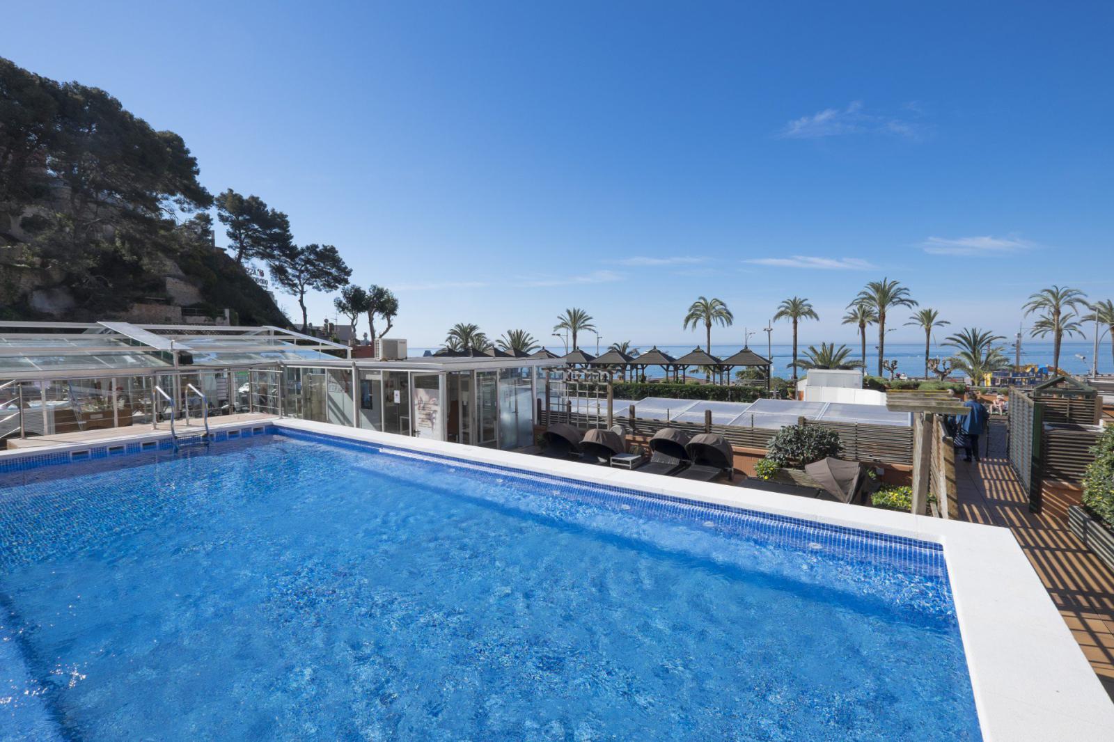 Hotel Rosamar & SPA vous accueille sur sa plage privée avec à la location des matelas ou des beds pour une journée de détente.