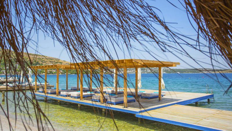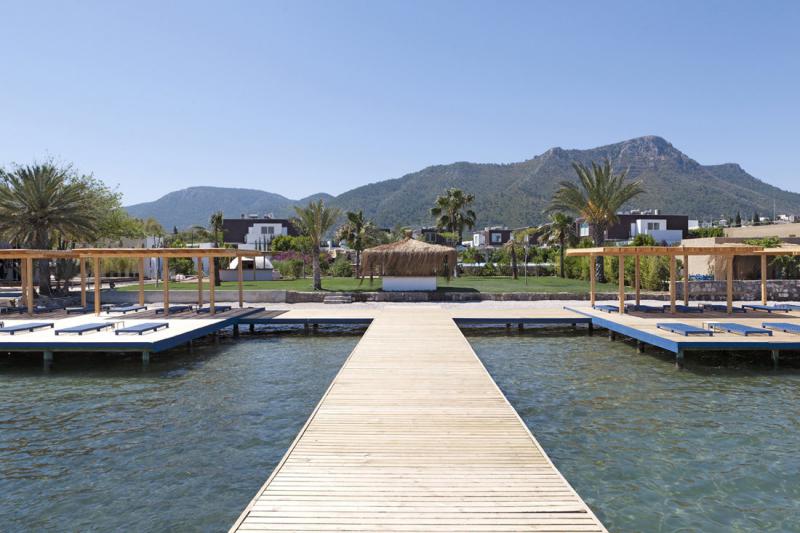 Une jetée et 200 m de plage sur le front de mer de Golkoy Bay..