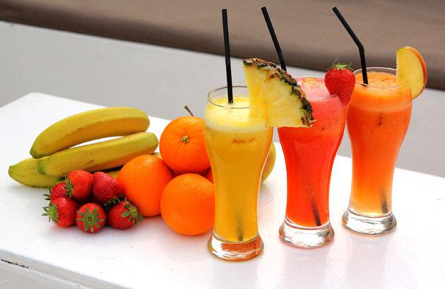 A la plage, vous trouverez une belle sélection de boissons, jus de fruits fraîchement préparés et des milkshakes.