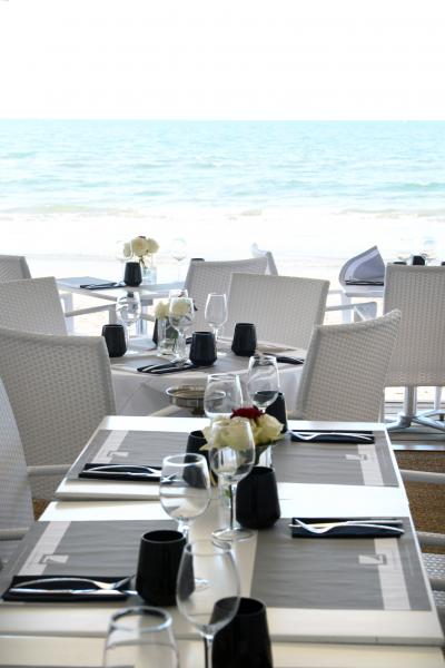 Hôtel top clubs quercus 4* vous accueille sur sa plage privée avec à la location des matelas ou des beds pour une journée de détente.