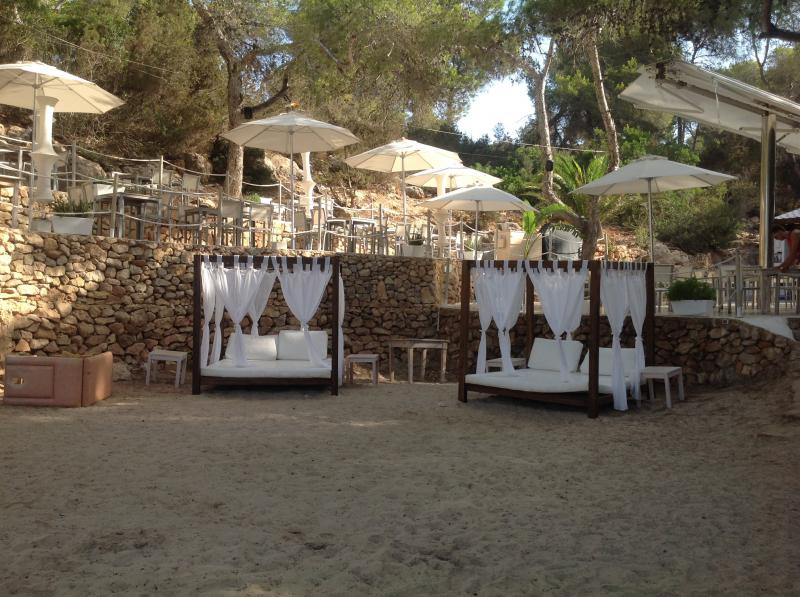 Le soleil partout: sur la plage, au restaurant pour déjeuner, dîner ou prendre un verre!! Le personnel vous accueille avec le sourire. Bonne cuisine méditerranéenne et la PAELLA EXCELLENTE. un endroit très agréable à garder secret ! C'est ouvert la journée mais aussi le soir. C'est le lieu de rendez-vous des gens de l'île, un endroit pour organiser des parties privées ( anniversaire, mariage,...)... La musique contribue à parfaire l'atmosphère. Une Journée de rêve au creux de la plus jolie crique de l'Ile