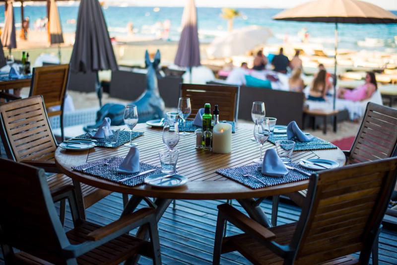 La cuisine y est raffinée, le décor très soigné, le personnel discret et efficace. Tout est fait pour que les clients passent un bon moment de détente. Ses beds confortables blancs immaculés, situés en première ligne de Platja d'En Bossa, le restaurant combine pour sa part une carte de sandwichs et de salades avec plateaux de poisson frais, de cuisine internationale, quelques touches asiatiques et même un sushi bar. Les clients disposent également d'une carte végétarienne et d'un vivier avec langoustes et homards frais