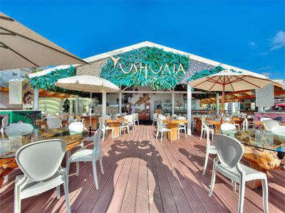 Sur la Plage, le restaurant offre une vaste sélection de produits méditerranéens, de poisson frais, de viandes grillées, un bar à salade et une fabuleuse carte des vins de champagne. Vous apprécierez également nos cocktails savoureux ou nos smoothies frais. Tandis que le décor émerveillera vos yeux, un voyage culinaire encore plus étonnant attend, en dînant directement de votre bed. Chez Ushuaia, les Jéroboams de vins rosés ou de champagne sont de rigueur - on vous sert directement sur votre immense lit balinais, vous vous reposez au soleil sous les embruns aux sons de la house music.