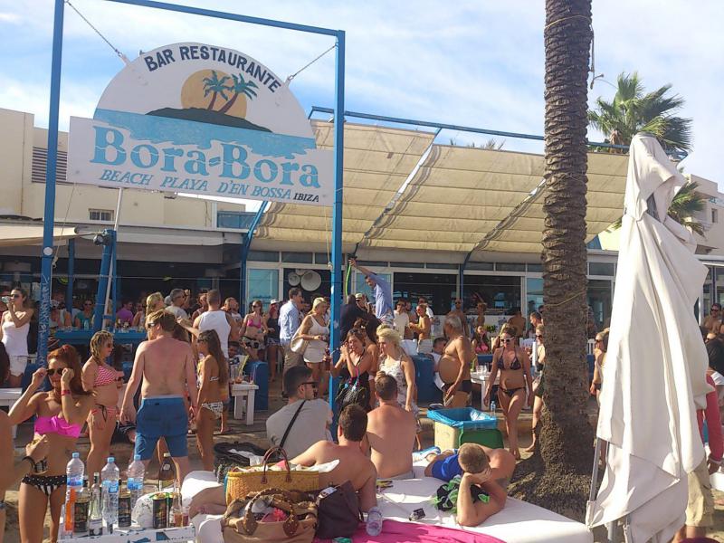 Situé au coeur de la Playa d'en Bossa, à seulement pas des clubs les plus célèbres dans le monde. Une vraie icône de soirs d'été dans Ibiza, Bora Bora beach Ibiza est devenue le leader de la fête de Playa d'en Bossa. C'est ouvert du lever du soleil au coucher du soleil et en continue jusqu'à l'aube. Mondialement connu Bora Bora Beach Ibiza est souvent décrit comme spécial et magique. C'est vraiment un emplacement étonnant pour découvrir l'expérience d'Ibiza authentique, super musique et une clientèle éclectique. Ici tout le monde danse en maillot de bain, sur des tables au soleil ou sous nos espaces couverts, le farniente est également de mise sur les grands lits accueillants