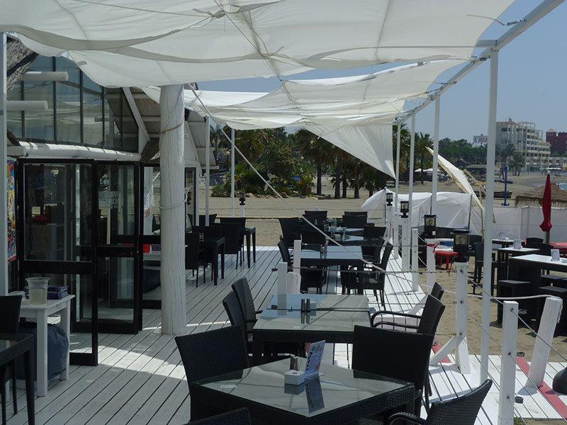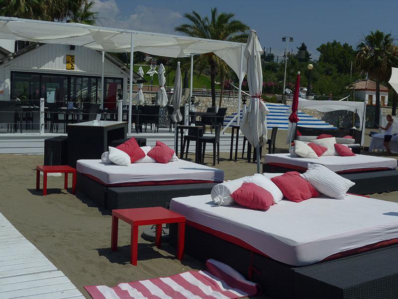 Bikini Beach est l'endroit idéal, Moderne et original, le club de plage comprend une terrasse en bois avec des tables extérieures ainsi qu'une salle si vous préférez l'intérieur, des chaises longues et des Beds à des prix attractifs pour la région.