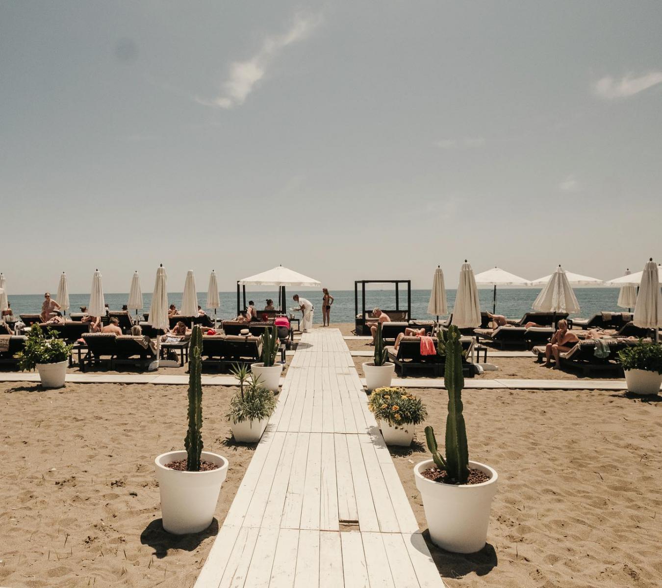 Purobeach Marbella est situé sur une belle plage où nos clients peuvent profiter des vues spectaculaires sur le rocher de Gibraltar et les montagnes de l'Atlas marocain.