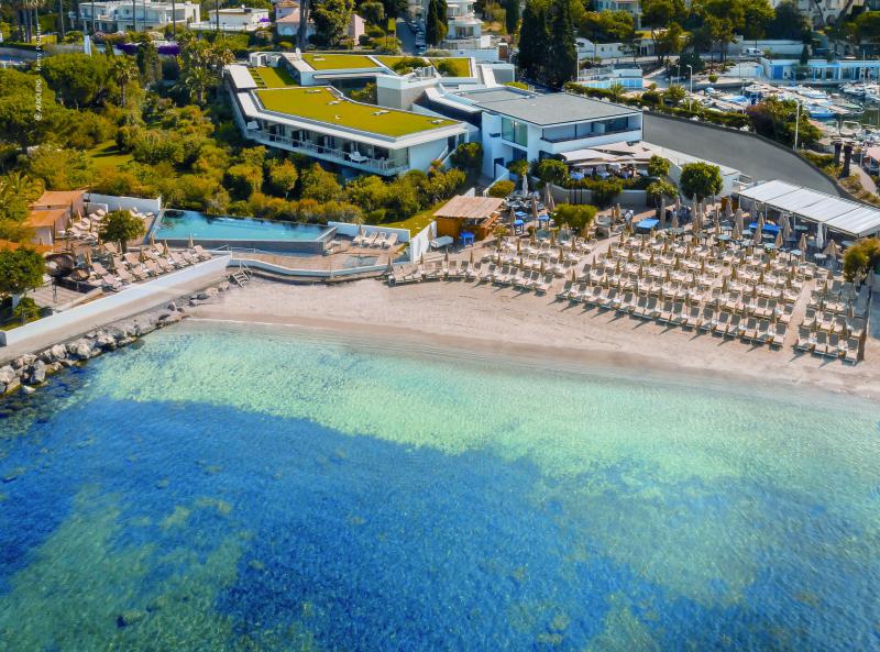 "Le Cap d’Antibes Beach Hotel est le seul hôtel du Cap d’Antibes les pieds dans l’eau à disposer d’une plage de sable fin.