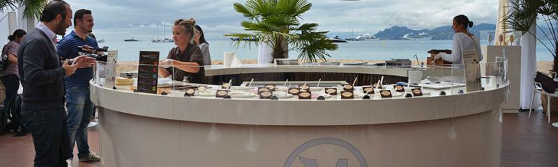 L'atmosphère élégante de ce décor prête volontiers son cadre au farniente. A l’ombre d’un parasol, confortablement installé sur l’un de nos transats vous admirerez la vue sur les îles de Lérins, son eau transparente en dégustant un cocktail signature. L’espace de 370 m² est équipé de vestiaires, douches intérieures et extérieures, serviettes de plage. Nous travaillons avec de multiples pêcheurs du bassin méditerranéen et de nombreux agriculteurs de l’arrière pays cannois.