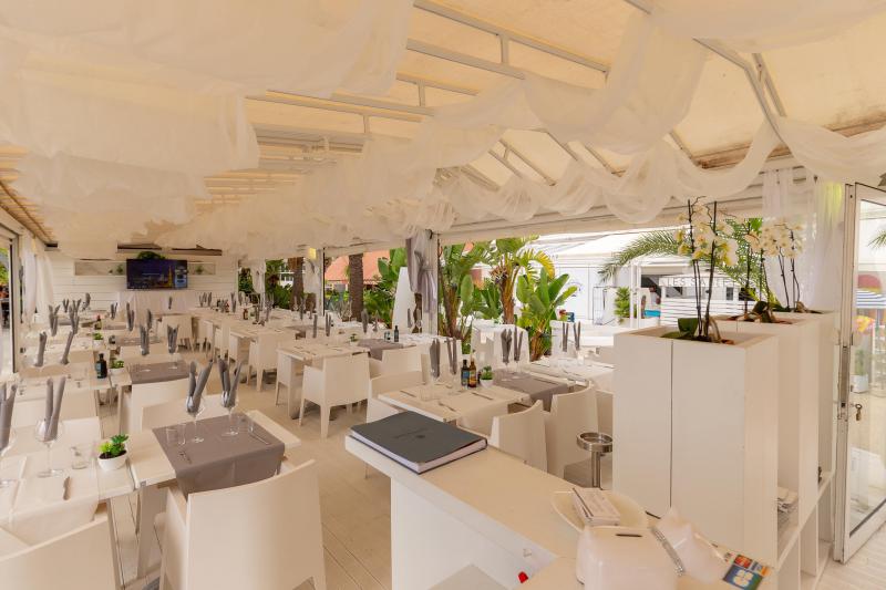 Sur une magnifique plage toute de blanc vêtue, le restaurant vous accueille dans un cadre à la décoration tendance et au design très épuré.
