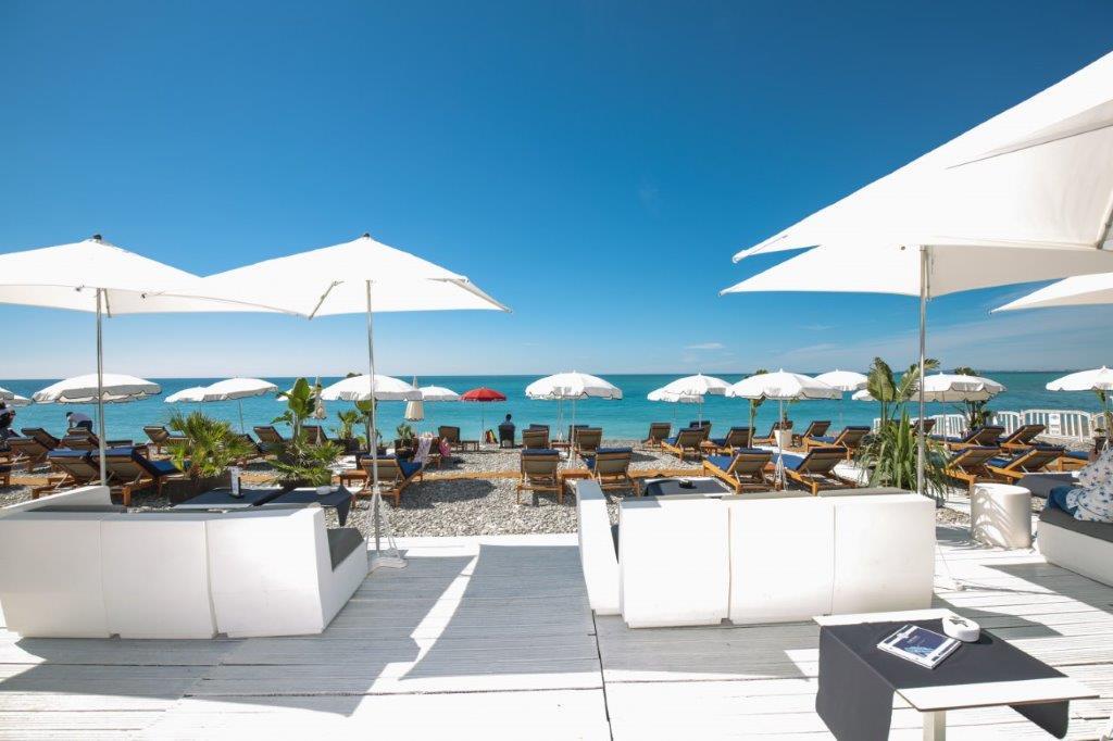Située sur la promenade des Anglais, la Plage Beau Rivage est la plus grande plage privée de la Côte d'Azur