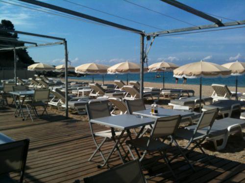 La plage privée du grand large propose transat et parasol 7/7 ainsi qu’une carte de salades et de bruschettas en plus de la carte traditionnelle. Vous pourrez vous détendre en profitant du soleil tout en dégustant du melon frais accompagnés de jambon cru par exemple !