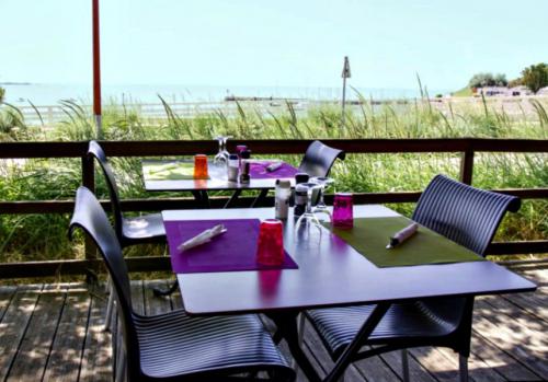 En bord de plage, une superbe grande terrasse avec vue sur la mer..