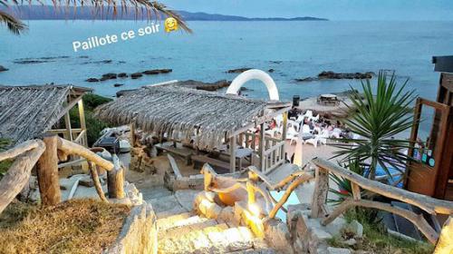 La fameuse Paillote du Scudo, accrochée sur les rochers dominant une crique intimiste