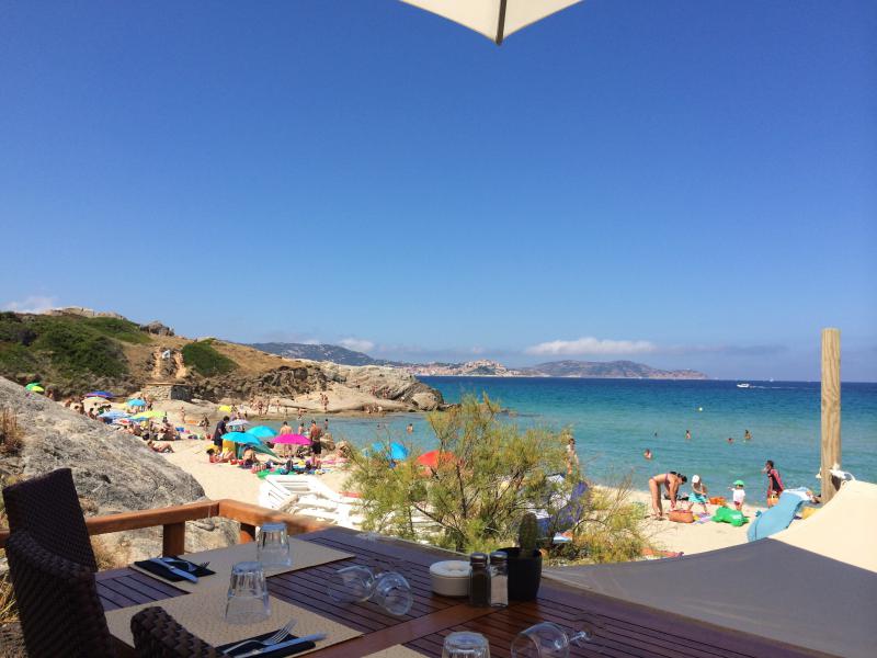 Le Restaurant le Pain de Sucre est niché au fond d'une petite crique, face au large, dans la baie de Sainte Restitude. Vous pourrez profiter du coté sauvage de sa situation et du confort de sa plage privée où les adeptes du farniente apprécieront le service sur transat.