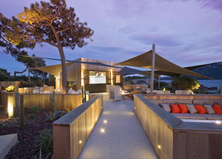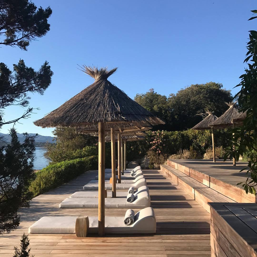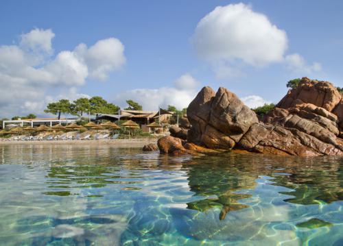 Une anse de sable fin ouverte sur le golfe de Porto-Vecchio, bordée de pins et de roches rouges. A l'ombre des parasols en herbes tressées, les transats invitent à une détente enchanteresse. A quelques mètres, de petites criques à l'eau cristalline se découvrent confidentiellement.