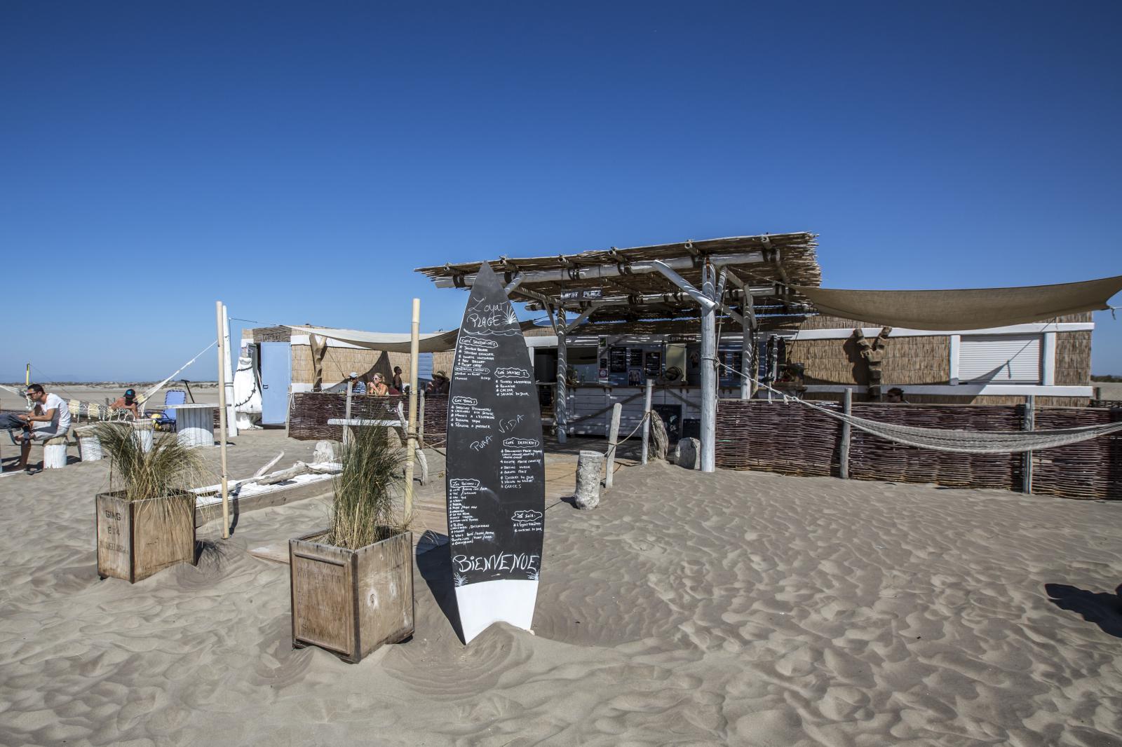Véritable oasis plantée sur la plage de l'Espiguette, l'Oyat éco plage vous étonnera par sa déco tout en bois et son atmosphère de bout du monde...