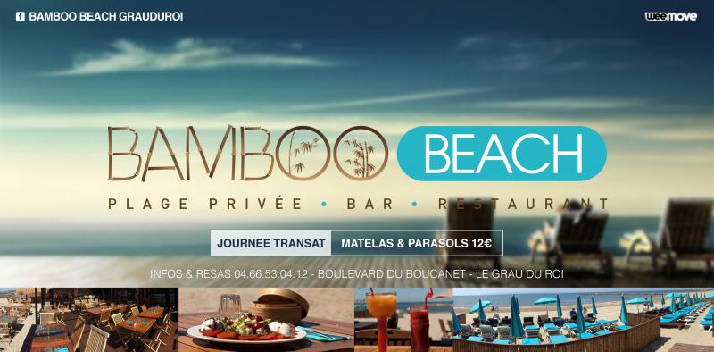 Bamboo beach situé(e) Boulevard du Docteur Bastide à Le Grau du Roi dispose d’un accès et d'équipements pour les personnes à mobilité réduite. Bamboo beach, Boulevard du Docteur Bastide à Le Grau du Roi propose un parking à proximité de son établissement. Bamboo beach, accepte les cartes bancaires en moyen de paiement. Bamboo beach dispose d'un bar pour déguster cocktails et autres boissons Bamboo beach met à disposition de ses clients des toilettes privées. Bamboo beach propose un service d'accès à internet sur la commune de Le Grau du Roi, utilisable gratuitement lors de la consommation en terrasse ou à l'intérieur. A proximité de Bamboo beach, à Le Grau du Roi un centre de secours vous accueillera si nécessaire. Pour votre sécurité, la plage de Bamboo beach, à Le Grau du Roi est surveillée par des maitres nageurs. Bamboo beach, dispose de douches privées.