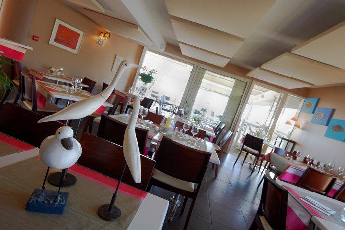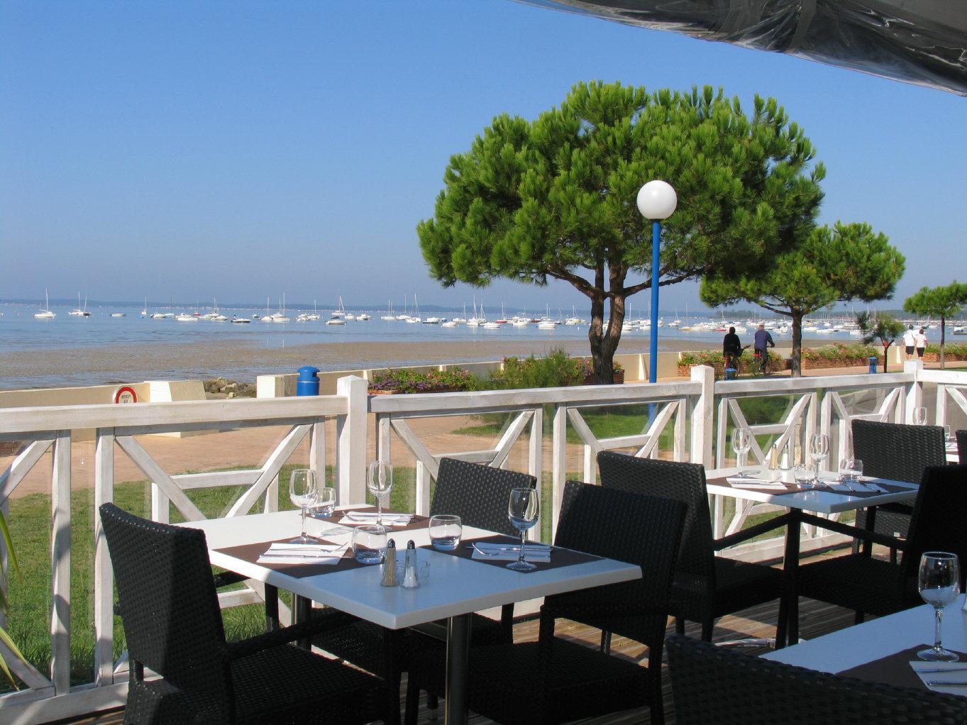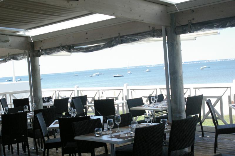 A 180° la vue sur le bassin d'Arcachon est magique. L'idéal le soir est de dîner sur la terrasse en première ligne pour profiter de la lumière changeante de l'horizon, de la beauté renouvelée du ciel, de la prise de pouvoir de la marée, mais pour goûter à ce privilège, il conviendra de réserver.