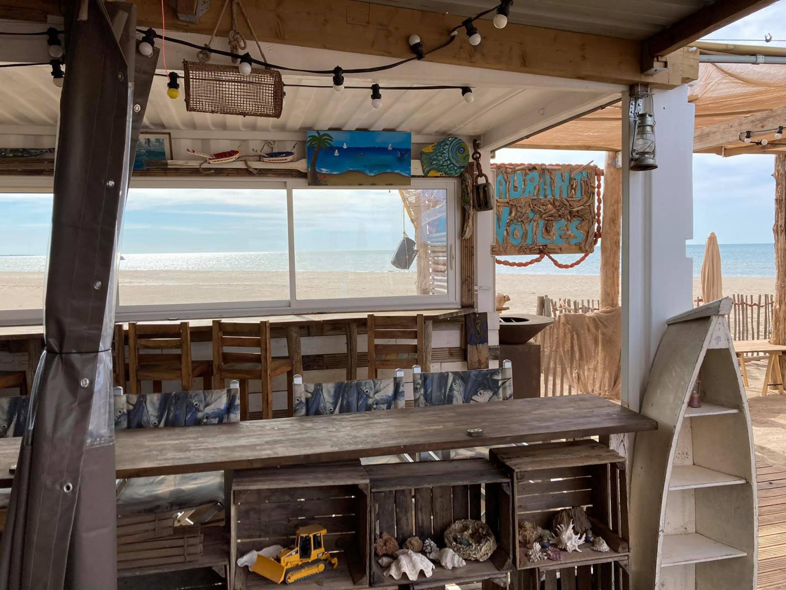 Les Voiles à Portiragnes, c'est un lieu de convivial et "rock and Roll", côté cuisine les produits locaux, y compris la pêche sont à la carte, vous pourrez choisir vos poissons sur le banc dédié, boire un verre et écouter de la musique souvent en live dont les propriétaires sont fans. Service continu la semaine de 12h à 21h et le week-end jusqu'à 01h