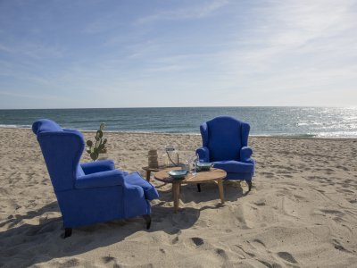 Les Ganivelles vous accueille sur sa plage privée avec à la location des matelas ou des beds pour une journée de détente.