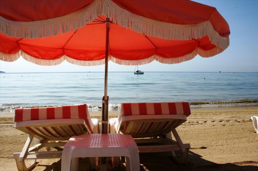 La plage de Marina Viva vous convie à venir prendre un bain de soleil face aux eaux turquoises de la baie de Cavalaire.