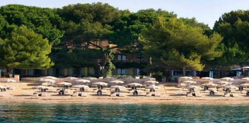 Au pied de l'hôtel, la belle plage privée de sable fin a conservé son caractère naturel... l'eau est transparente pour le plaisir des baigneurs... Aménagée de transats et parasols, la plage est une invitation à la détente... L'endroit propice au farniente !
