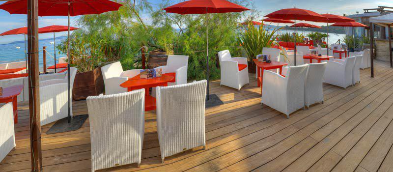 C’est au sein de ce petit bijou qui allie esthétique et confort qu’une équipe dynamique vous offre un service chaleureux et de qualité. C’est un véritable complexe agréable pour passer un moment unique les pieds dans l’eau sur la plage face aux Iles d’Or et au Cap Nègre. Vous y trouverez des espaces propices à la détente, mais aussi un restaurant aux spécialités méditerranéennes et au feu de bois. Vous pourrez déguster nos poissons frais et sauvages, nos belles viandes sélectionnées mais aussi des plats cuisinés à base de produits frais.