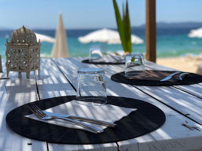 Vue sur les îles de Porquerolles et l'île d'Or ; une équipe dynamique, cuisine produits de la mer.Les pieds dans le sable, de l'espace, que demander de mieux pour passer des moments en famille ou entre amis,