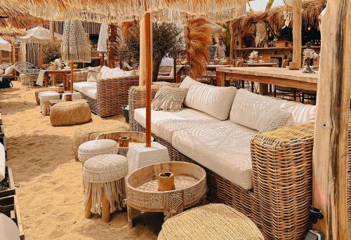 La Pura Vida vous accueille sur sa plage privée avec à la location des matelas ou des beds pour une journée de détente.