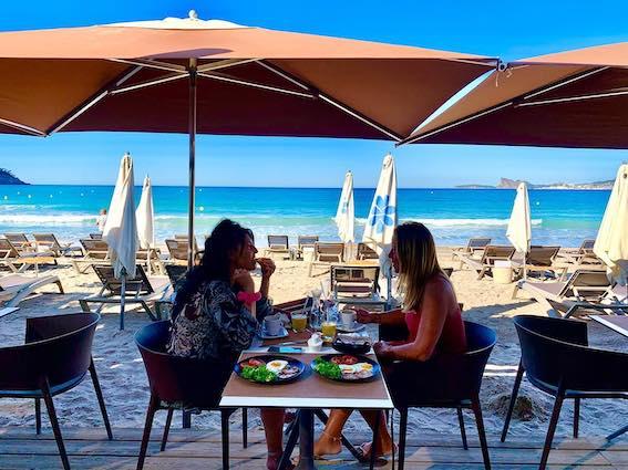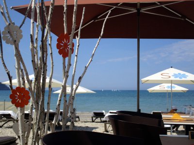 Ici même, Sophie et son équipe vous accueillent pour un vrai moment de détente, confortablement installé sur un transat tout en profitant d'une vue imprenable sur la baie des Lecques, le tout les pieds dans l'eau: