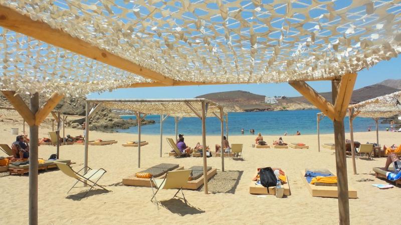 Alemagou Mykonos vous accueille sur sa plage privée avec à la location des matelas ou des beds pour une journée de détente.