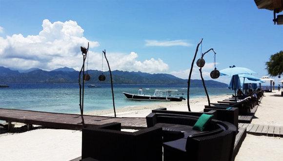 Si vous venez à Trawagan, Blue Beach Club de Villa Ombak est le lieu incontournable