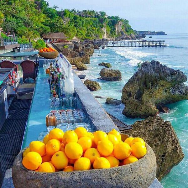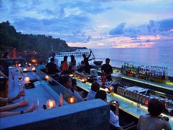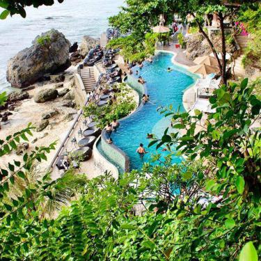 l'endroit est une institution à Bali, surtout ne pas rater le coucher de soleil accroché à flanc de falaise, après être descendu par un petit funiculaire qui vous dépose près du bar et de la piscine d'eau de mer vous pourrez en attendant l'heure prendre un cocktail fabuleux et des tapas revisitées,