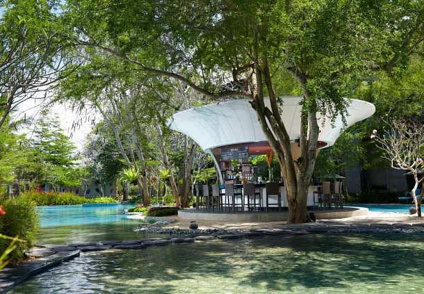 Doté d'une grande piscine aménagée de style lagon bordée de chaises longues, le Courtyard by Mariott Bali Nusa Dua est un établissement 5 étoiles