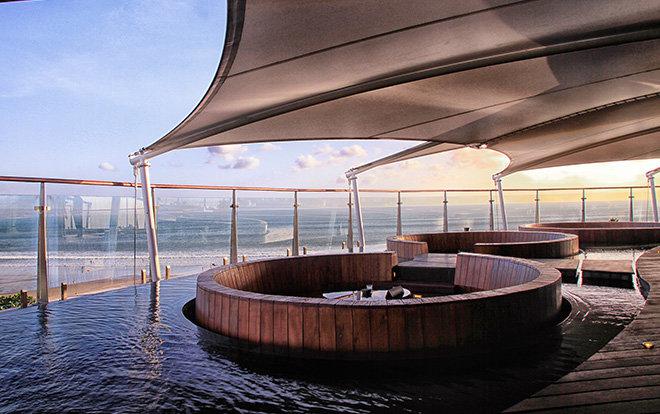 Quinze mètres au-dessus du niveau de la mer et couvrant plus de 1700 mètres carrés, ceci est un des plus grands bars sur les toits du monde.