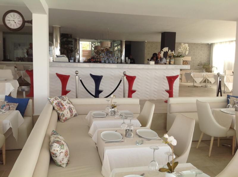 Amina HMADA est décoratrice d'intérieur. Son établissement est à la fois raffiné et accueillant, immense bar blanc, table en bois massif, jacuzzi, table surplombant la mer. La carte est variée, un endroit "soft"