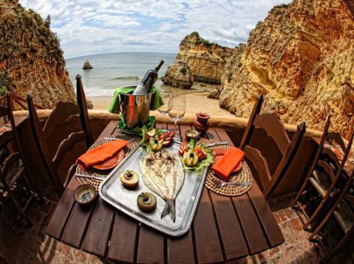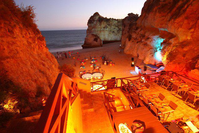 Il y a plusieurs raisons de se rendre dans ce lieu enchanteur, pour commencer l'emplacement à flanc de falaise aux pieds de l'océan, la cuisine midi comme soir principalement à base de produits de la mer tout juste sortis de l'eau, les spécialités d'Algarve, pour la fête, lorsque la marée le permet un DJ s'installe sur la plage, les cocktails sont prêts à être dégustés, les falaises sont éclairées et on dans jusqu'au bout de la nuit les pieds dans le sable.