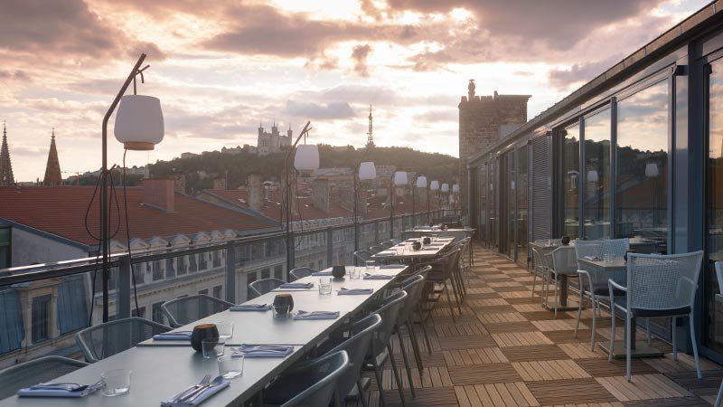Au dernier étage de Maison Nô, le RoofTop offre une vue panoramique sur Lyon, unique en Presqu'île. La basilique de Fourvière vous regarde depuis la colline, face aux tours de la Part Dieu. La voûte éclairée de rouge de l'Opéra, les clochers de l'Hôtel de Ville, la Chapelle de la Trinité et la Bourse viennent signer ce tableau.