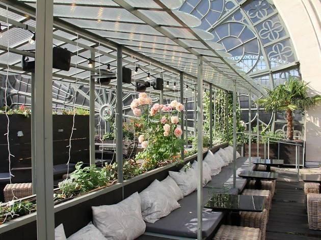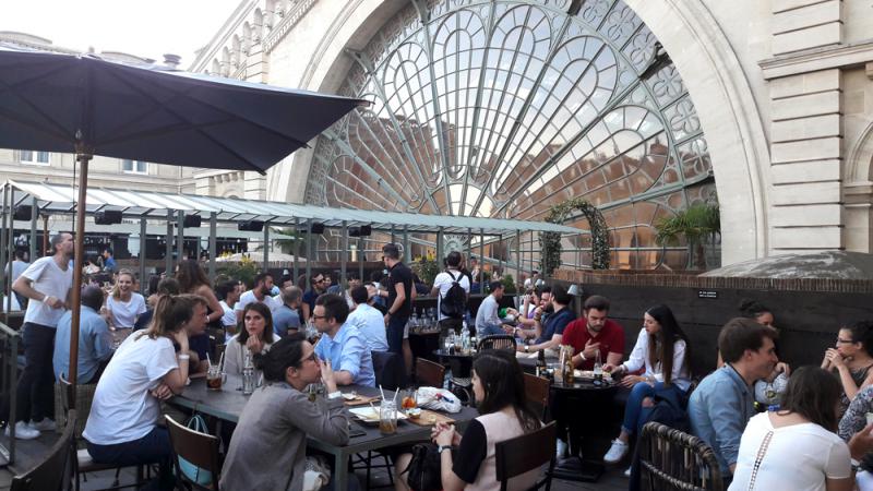Dans les étages de la Gare de l’Est, sous la rosace Eiffel, vous trouverez une grande terrasse d’ordinaire inaccessible. Surplombée d’un côté par la statue de Verdun, de l’autre par une femme de pierre, vous voilà dans un décor industriel et romantique. La terrasse parsemée d’arches fleuries accueille un grand bar et un snack, pour le plaisir d’observer les voyageurs se presser vers la gare.