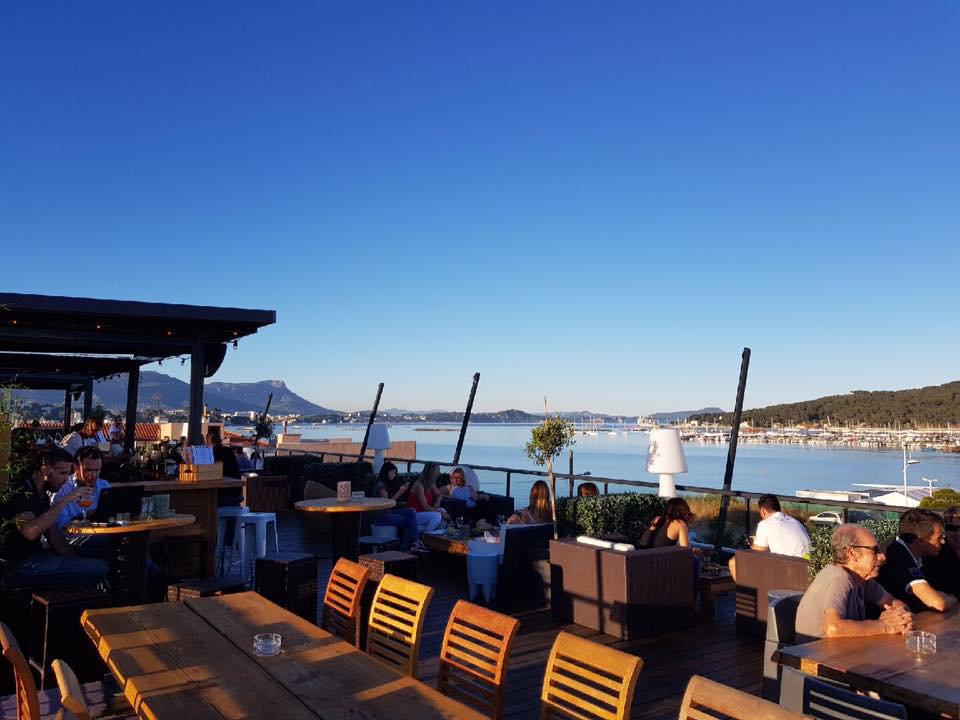Une vue panoramique sur les Sablettes et La Rade, le cadre est posé, un décor sympa, du bois, des sofas, et un accueil chaleureux.La qualité de la carte, tant par les vins que les spiritueux proposés seuls ou en cocktail, des tapas ( huitres, seiches à la plancha, houmous et kefta maison, plateau de charcuterie et fromage ), de quoi passer un joli moment en amoureux ou entre amis ..